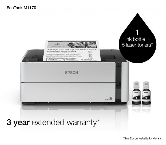 Giving peace of mind, every EcoTank mono printer comes with a one-year/100,000-page warranty.